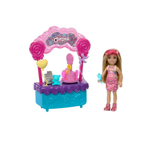 - This Chelsea doll is the cutest candy stand vendor with her pink visor and dress.