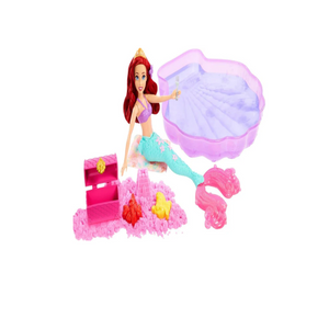 It's going to be a perfect pool day with Swim & Sand Ariel! Inspired by Disney's The Little Mermaid movie, fashion-doll mermaid Ariel comes with a large, shell-shaped pool for endless water-play fun. Set includes moldable sand and 3 sand molds, including molds of beloved characters Flounder and Sebastian. Five more accessories, like a beach towel and treasure chest, expand the stories kids can tell! Colors and decorations may vary.