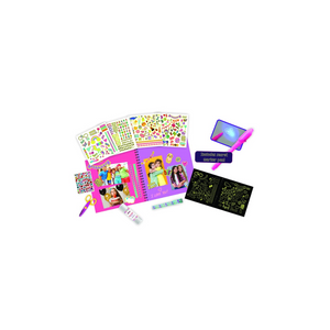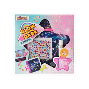 - includes 367 pieces: 1 Spiral bound hardcover 10x 10 scrapbook, 1 secret marker pen, 112 glow in the dark sticker, 206 alphabet glow in the dark sticker, 100+ plastic gems, 1 Washi tape, 1 Scissor and 1 Glue Stick.