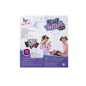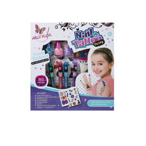 Designing custom nails and tattoos for you and your friends has never been more fun than with our nail & tattoo party kit. This kit has all you need to express your sense of style and make your fingernails beautiful at the same time.|Temporary way to make a lasting impression. Designing custom nails and tattoos for you and your friends| Kit includes : 3 nail polish (4.5g x 3), 4 temporary tattoo pens , 190 nail sticker , 54 nail applique, tattoo design sheet & easy instructions|Kid-friendly polish: the ultimate nail studio includes 4 non-toxic and low odor, water based nail polish|Great group activity: have a spa day for you and your friends! Kit includes enough material for multiple uses.
