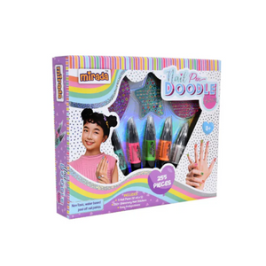 "Mirada Nail Doodle Salon Lets You Express Your Nail Art Creativity With 5 Colors Of 2 Tip Nail Pens. ";One Side Is A Brush To Add Lots Of Color To The Nail And The Other Is A Precision Tip Pen For Adding Tiny Details To Your Art.;Sketch And Paint Long Lasting Looks With These Non-Toxic Nail Polish.;"Includes : 250 Nail Stickers, 5 Scribble Nail Pen And Easy Instructions. ";"Nail Pen Is Made Of Safe And High-Quality Materials, Washable, Non-Toxic, Water-Based Material, And Soft To The Nails. ";Great Group Activity: Have A Spa Day For You And Your Friends! Kit Includes Enough Material For Multiple Uses.;;