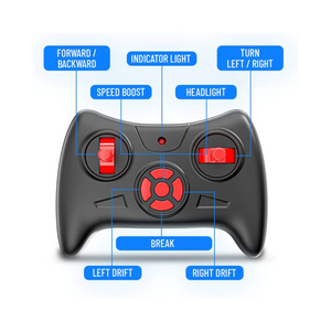 - LED head and tail lights: Make your car look super cool as you steer, accelerate, and brake.