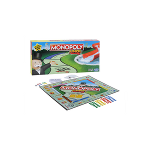 The MONOPOLY junior game is a simple introduction to the iconic MONOPOLY game. With easy and exciting gameplay, kids can have a fun, fast adventure as they move around the board as they journey through the cityscape of MONOPOLY town. Players land on kid-friendly spaces in MONOPOLY town such as the ice cream parlour, the roller coaster, and the zoo, as they buy up properties, collect rent, and discover their fortune. The player with the most money after any other player goes bankrupt wins! The Hasbro, Hasbro gaming, parker brothers, and MONOPOLY names and logos, the distinctive design of the game board, The four corner squares, the Mr. MONOPOLY name and character, as well as each of the distinctive elements of the board and playing pieces are trademarks of Hasbro for its property trading game and game equipment.