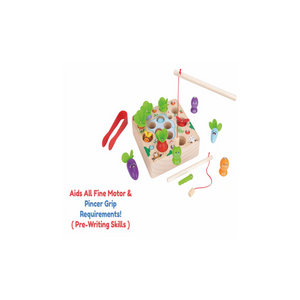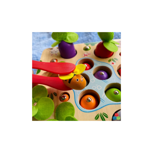 Include a beehive, 2 bees and a Tweezer. Kids Use Tweezer to grab the bee wings and Carrot leaves to put all in their respective places.