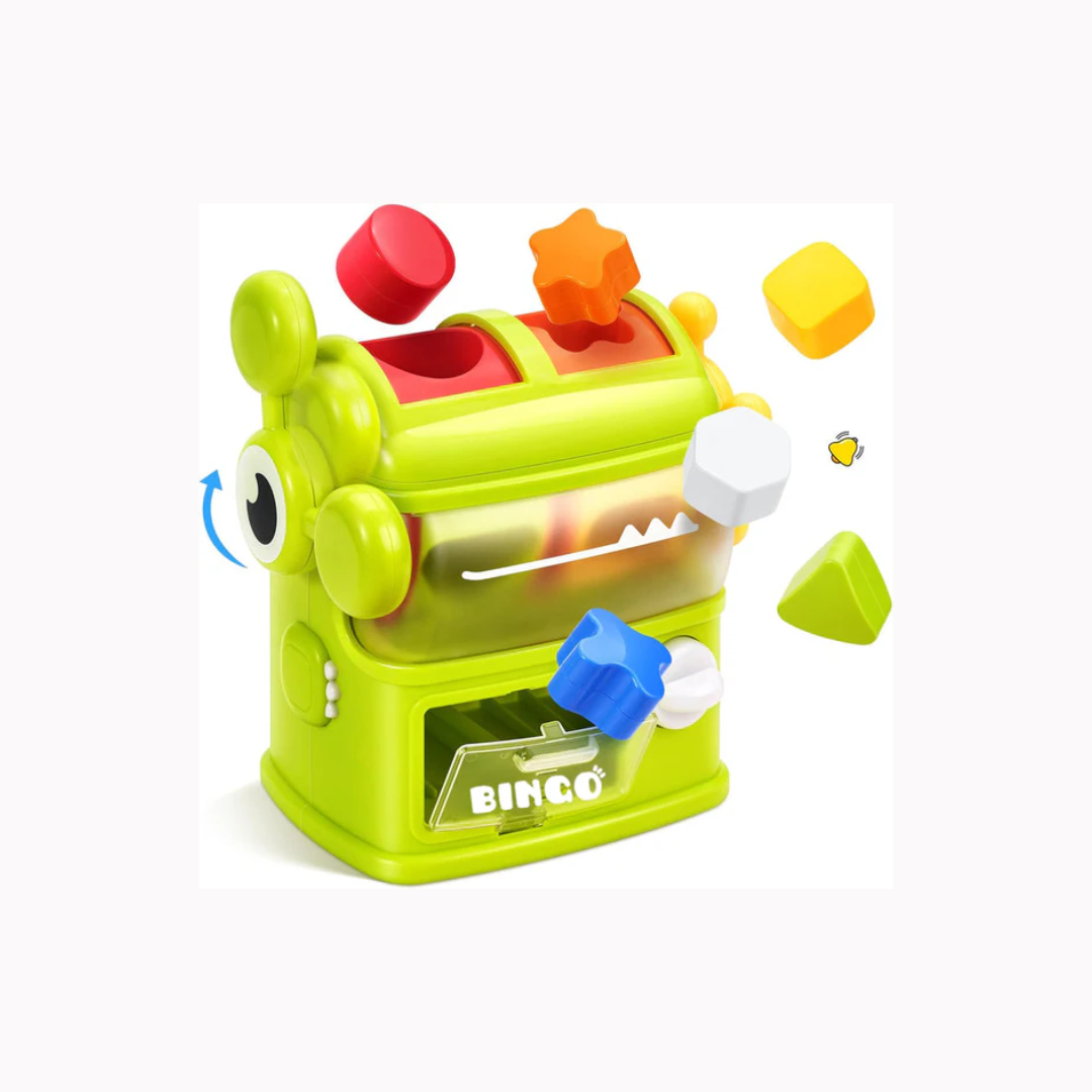 - Easy Retrieval of Shapes: After inserting the matching shape, twist the slider again to drop it down. To retrieve, give a gentle twist to simulate turning a switch and open the lid to take out the shape inside.