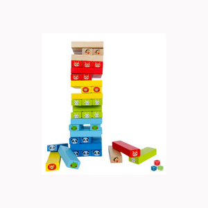 Introducing our Open Ended Jungle Tumble Wooden Stacking Game A household favourite for the whole family, the Animal Jenga Stacking Game from Open Ended follows the usual jenga game objectives whereby you are to remove puzzle pieces from the tower without it toppling over!