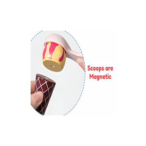 Scoops are Magnetic for enhanced play. Kids love scooping the ice cream and doing different colors/flavor combos.