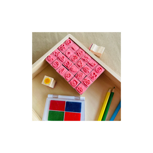 Empower your child to express themselves with the Wooden Favorite Things Stamp Set—a perfect tool for hands-on, imaginative learning. Let their creativity shine with each colorful stamp!