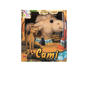 - Keep a constant source of amusement for your kid with the Pugs at Play Cami The Talking Camel. This puppet is made from high-quality materials that are incredibly soft and plush. It has small feet and hands that are flexible enough to move in various ways. The puppet comes with a hole in the back so you can easily slip your hand through and operate the animal's mouth.