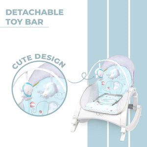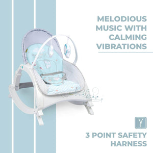 R For Rabbit 3 in 1 Rock N Play Rocker - Adjustable Backrest Recline, Detachable Toy Bar, Soothing Music & Vibration, Adjustable Green Grey