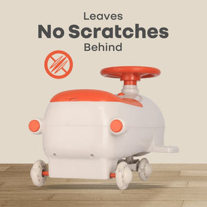 PU LED Wheels: The wheels are made of high-quality PU material which leaves no streak marks on the surface and the LED lights up brighter as your kid rides the swing car.