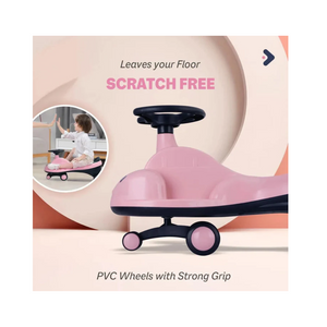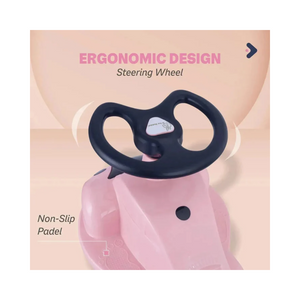 Introducing the R for Rabbit Iya Iya Zippy Kids Swing Car in charming Pink, a delightful and safe ride-on magic toy car designed for children aged 3 and above. BIS Safety Certified, the Iya Iya Zippy ensures your baby kid experiences unlimited fun with its smooth and secure swing car design. The scratch-free PU wheels, coupled with ABEC7 bearings, provide a strong grip for seamless gliding both indoors and outdoors, leaving floors pristine. Not just for the little ones, this swing car boasts a robust construction with a weight capacity of up to 75 kgs, allowing adults to partake in the excitement as well. The attractive design showcases a captivating blend of smooth curves and contrasting colors, offering a range of options for your child to choose their preferred style. Choose the Pink Iya Iya Zippy for a whimsical and enjoyable ride, perfect for boys and girls alike.