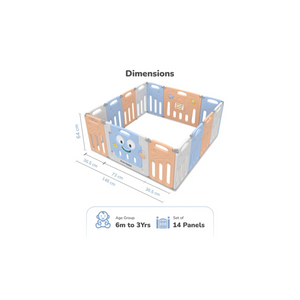 R For Rabbit Joyland Playard For Kids 14-Panel Playard Sturdy and Stable Structure Blue Orange