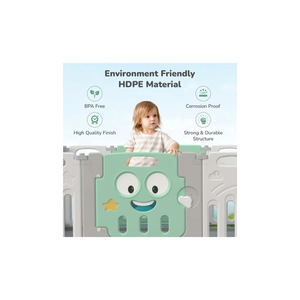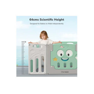 R For Rabbit Joyland Playard For Kids 14-Panel Playard Sturdy and Stable Structure Green White