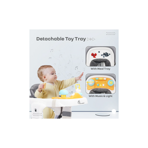 Detachable toy bar with meal tray: It offers you the versatility of converting the detachable music toy bar into a meal tray, thus, satisfying your baby’s hunger along with play time.