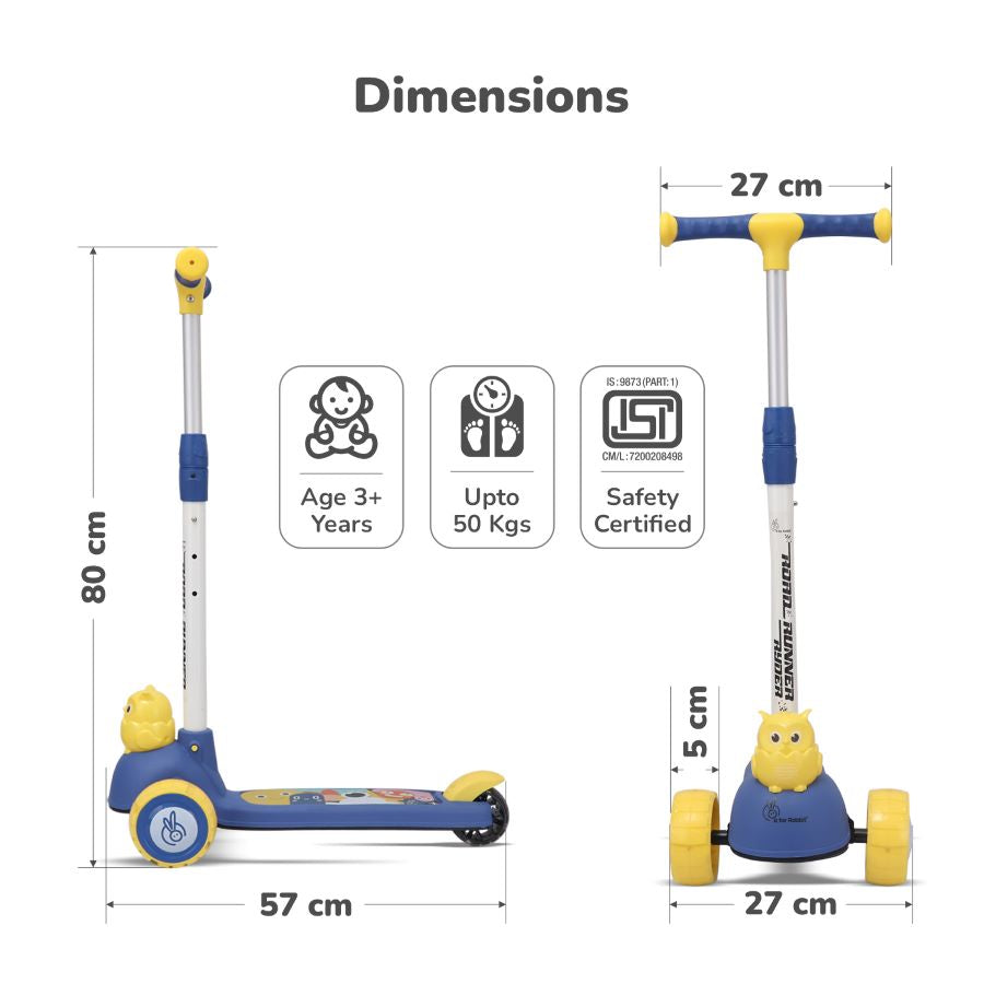 R for Rabbit Road Runner Ryder Scooter For Kids With PU LED Wheels Blue Yellow