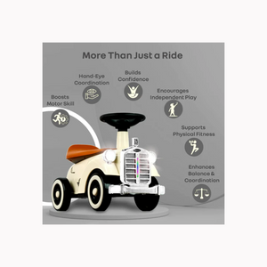 Designed to bring out the charm of yesteryear with a vintage-inspired look, R for Rabbit is introducing Speedster Royal to combine its timeless design with effortless comfort, safety, and performance. This is designed for the young, adventurous minds who love thrill and smooth steering drives. It is easy plug-and-play installation, with ergonomic seats and scratch-free wheels that leave no scratches behind. Also, the structure of the Speedster Royal is strong and sturdy to guarantee safe rides with smooth-rolling wheels for seamless movement. It also comes with a horn and LED lights to bring out the excitement of every ride while also enhancing the development of sensory skills. R for Rabbit’s Speedster Royal is vintage, smooth, comfortable, and charming for your little one’s stylish ride. Classic in look, modern in design. Order Now.