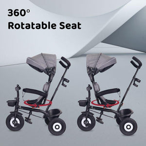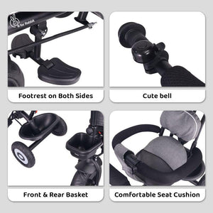 R For Rabbit Tiny Toes T40 Plus Tricycle - Rubber Wheels, 360 Rotatable Seat, Adjustable Canopy, Parental Control Grey Black