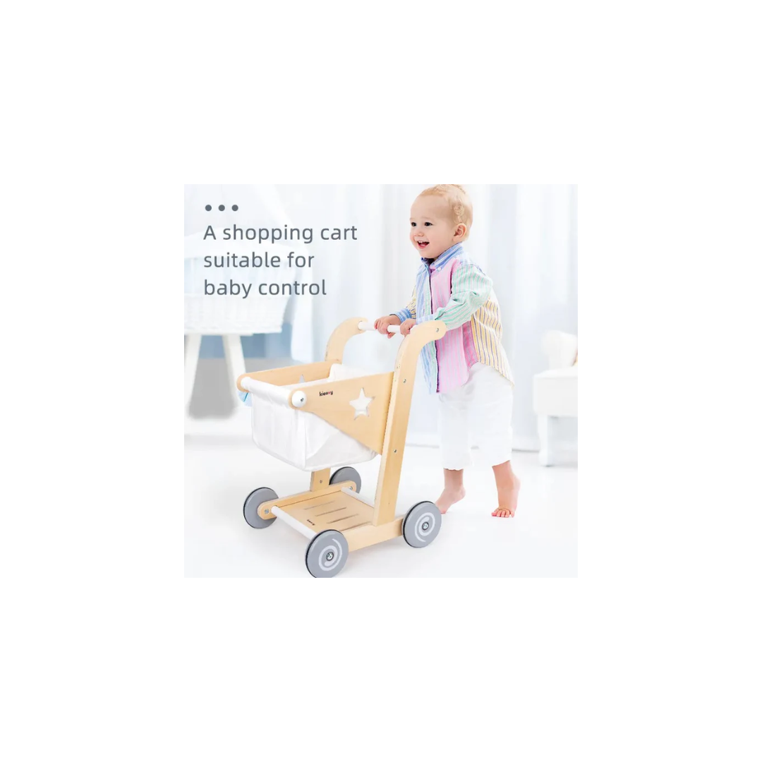Rainbow Toys Educational Wooden Toy Role Play Grocery Store Shopping Cart Walking Trolley Play set