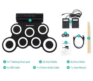 - Easy carry - silicon foldable drum kit and collapsible drumsticks allow you take it anywhere, play it anytime just roll it up and put it in your bag