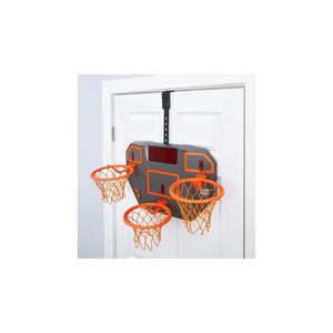 - Includes electronic backboard, adjustable door hook, 3 removable hoops, 3 real-feel basketballs, air pump