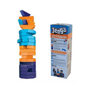 Stack and build with different shapes and colors! The Jenga Octagon game features blocks of varied shapes that must be stacked to keep the octagon-shaped tower. Enjoy the excitement and anticipation as each player carefully removes and stacks blocks, keeping the octagon shape as the tower gets higher and higher.