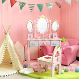 Rainbow Toys Kids Wooden Dressing Table Vanity Table and Stool Set With Mirror