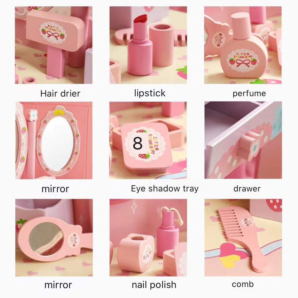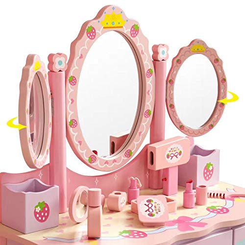 - ✿Safe and Sturdy: Wooden makeup table is made of durable high-density board and solid wood, which is durable and strong. The paint is designed to be lead-free and has no odor and does not interfere with the health of the child.