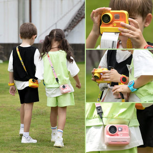 - Easy to Use: Instant print camera adopted ergonomic design, fit comfortably in children hands, one key to take photo and one key to print, with a lanyard for hanging, which is easy to operate.