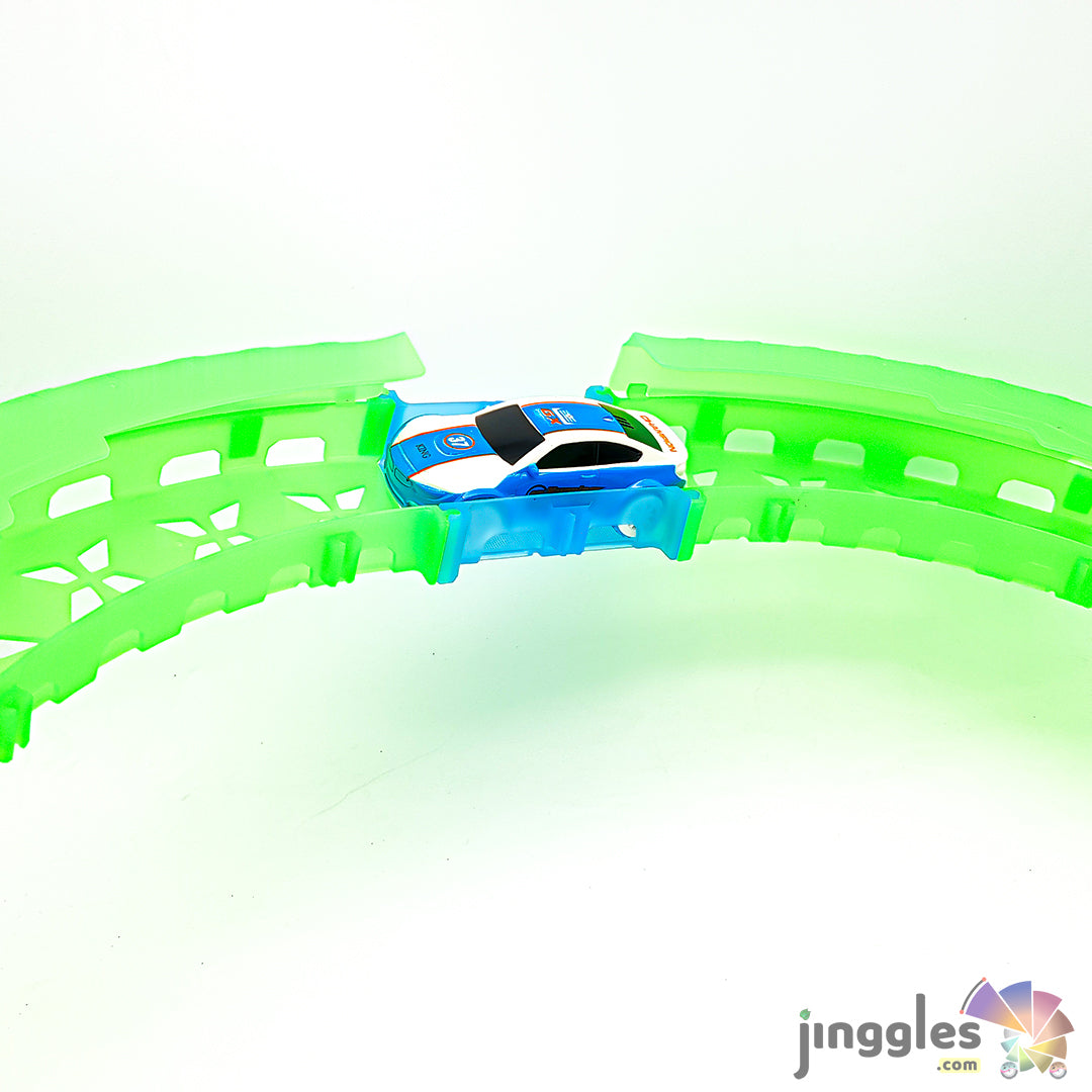 Kids glow-in-the-dark race car set.