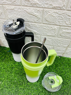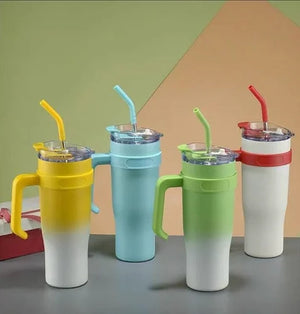 Rainbow Toys Stainless Steel Tumbler Stenley with Handle Straw & Lid Hot and Cold Insulated 1200ml Assorted Color