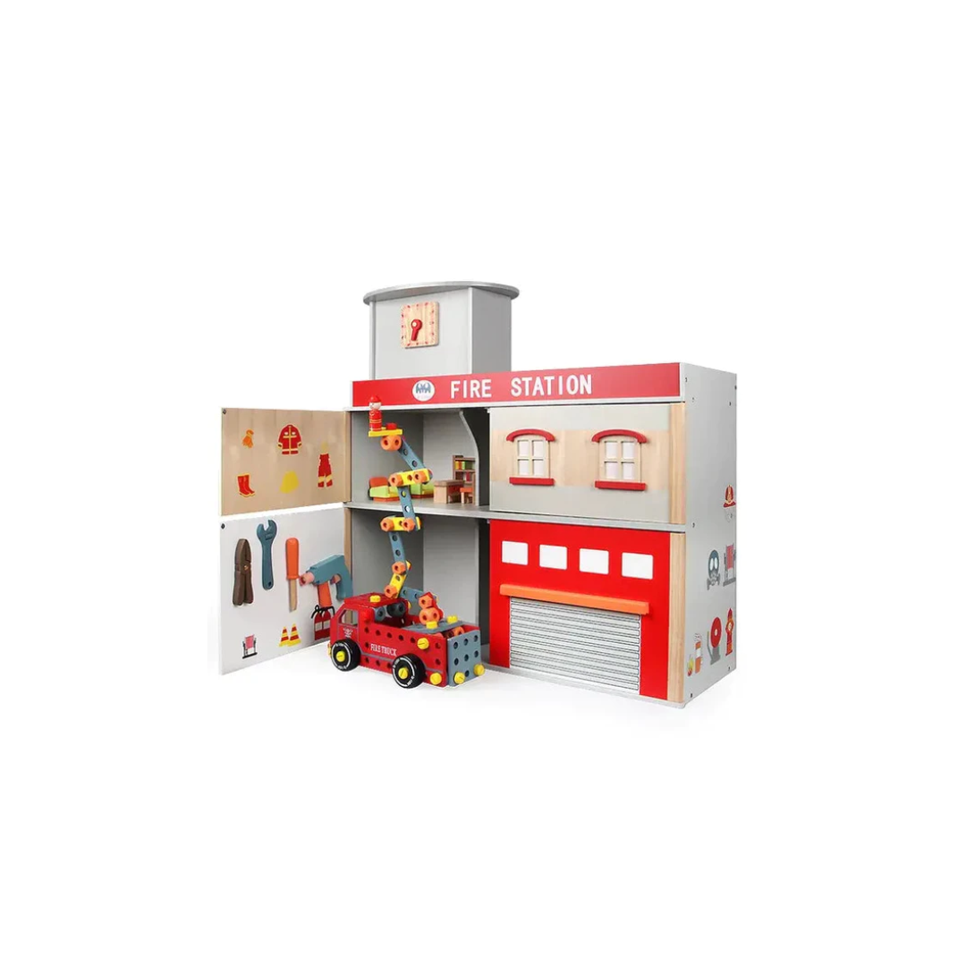Childrens play house fire station toy large wooden simulation baby fire station toy set for kids - Eduspark ToysChildrens play house fire station toy large wooden simulation baby fire station toy set for kids