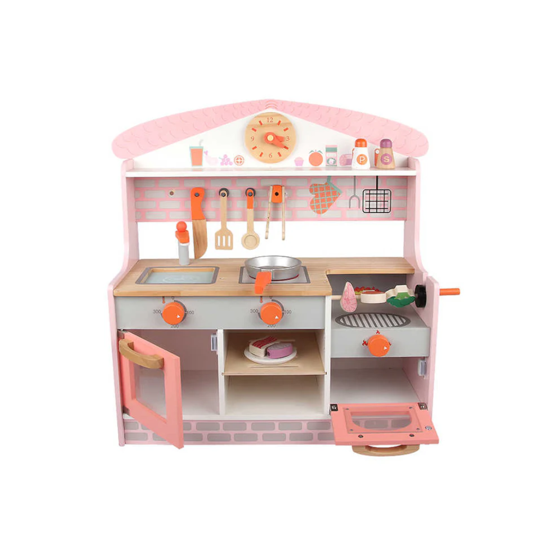 Rainbow Toys wooden kitchen toys Pretend Play Kitchen Toys Set with BBQ