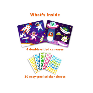 - WHAT'S INSIDE: 30 easy-to-peel, coloured sticker sheets (500+ stickers), 4 double-sided canvases