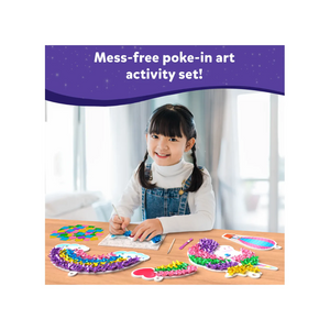 - POKE-IN ART ACTIVITY: This mess-free activity set sparks creativity as kids create their own magical unicorn dream decor by decorating unicorn-themed foam shapes with sparkly fabric squares and string them all together with the glitter string! It's the perfect way to brighten up a room with DIY room decor!