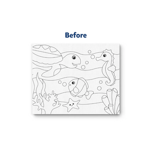 Colour your canvas with air-dry clay and bring this underwater scene to life! Use the crafting tools to add textures and patterns - polka dots, squiggles, and more! This is the perfect mess-free kit to add to your art & craft collection!
