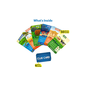- PLAY IT ANY TIME ANY PLACE: Includes 50 Game Cards, 6 Clue Cards and a handy box to store it all. The box size is portable & travel-friendly. Your child can become an instant champion by playing at game nights, gatherings, birthday parties, play dates, road trips, plane trips, outdoors, and more!