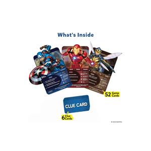 - ULTIMATE GUESSING GAME: Divide yourselves up in teams, or play one on one, and ask up to 10 questions to guess the Marvel character on the Game Card! Can she fly? Is he a part of the Avengers? Be the first player to win 7 Game Cards!