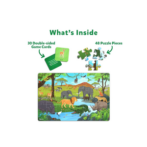 Skillmatics introduces Piece & Play Amazing Animals, a captivating blend of a giant floor puzzle and an engaging game, designed to captivate the curiosity of children aged 3 and above. This innovative product offers a multifaceted learning and play experience. The giant-sized puzzle, once completed, measures an impressive 36" x 24". The large, sturdy pieces are specifically crafted for young children, allowing them to handle and assemble the puzzle independently. The puzzle itself becomes a visual feast as it showcases various animals in their natural habitat. The uniqueness of Piece & Play lies in its dual functionality. As children put together the puzzle, they simultaneously embark on a search & find game. This dynamic combination enhances observational skills, attention to detail, and cognitive abilities. The game offers two ways to play, adding an element of versatility to the learning experience. Piece & Play Amazing Animals serves as an interactive tool for introducing young minds to the wonders of the animal kingdom. It encourages independent play, providing a sense of accomplishment as children successfully complete the puzzle and engage in the entertaining game that follows