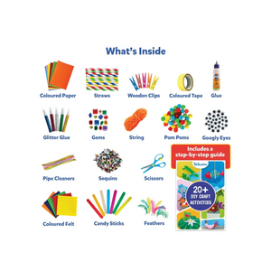 Your one-stop arts & crafts supply kit with over 2000 pieces of art & craft supplies for kids to express themselves through the power of creativity. Use the included guide to create 20+ DIY crafts, or create your own unique work of art.