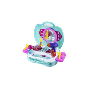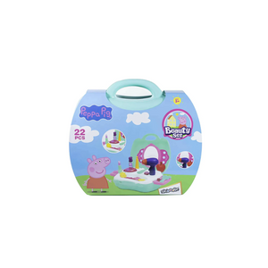 - Peppa Pig Beauty Set Includes: 1 Briefcase Stand, 1 Sticker sheet, 1 Briefcase Tray, 1 Briefcase, 2 Briefcase Ears, 1 Comb, 1 Mirror, 1 Blusher, 1 Make up set, 4 Hair clips, 1 Hairbrush, 1 Blusher Brush, 1 Play tower, 1 Lipstick, 1 Nail polish, 1 Ring, 1 Perfume bottle, 1 Hair Dryer