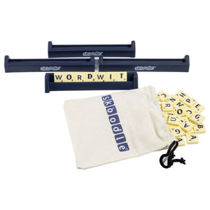 - Product Specifications: 100 WordWit Tiles, 4 Skoodle Racks, Game board, Skoodle Tile Cloth Bag, Instruction Guide.