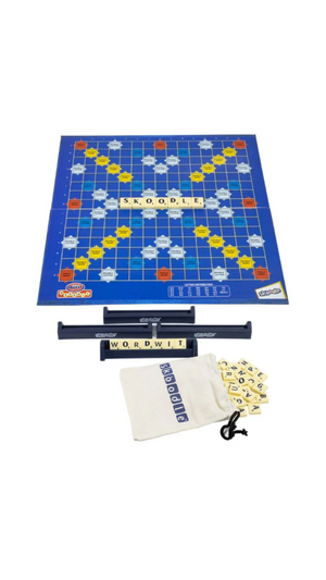 includes : 100 WordsWit Tiles , 4 Skoodle Racks, Game Board , Skoodle Tile Bag & Instruction Guide