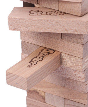Skoodle Stackrr Mini Stacking Tumbling Tower Game with 39 Precision Wooden Blocks