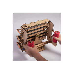 Introducing the most exciting toy that you will make and then want to play with again and again and again. After all, it is not easy to roll your marble all the way to the collector tray, when there are 8 different levels of friction coefficients you have to conquer. Gravity and friction are fundamental concepts that a child experiences at an early stage. These concepts are also introduced as part of curriculum at primary level (through their application in concepts such as force, motion and energy). Slippery slopes friction slider stem, educational, construction, DIY toy demonstrates engages children in learning these concepts by demonstrating the effect and working of friction through its gameplay. When assembled, slippery slopes friction slider consists of 4 channels arranged one below another, to form a continuous track for a marble/ball to roll through from start to finish. These channels have bases which are covered with interchangeable material (with different friction coefficients). The objective is for you to guide a marble/ball from the start point to the collector at the base using gravity and controlling (using the handles, like a joystick) the inclination of the channels through the different levels. Each level offers a new and unexpected degree of challenge for the ball to roll (since friction coefficients of different surfaces such as foam, sandpaper, plastic, etc. offer different levels of resistance). The gameplay can be made even more challenging by adding further variable obstacles in the form of rubber bands (in slots provided). Everybody is a winner though, because crossing every level awards you some points. The highest points can be won by guiding the marble/ball through all 4 channels, from start to finish (collector basket at the base).