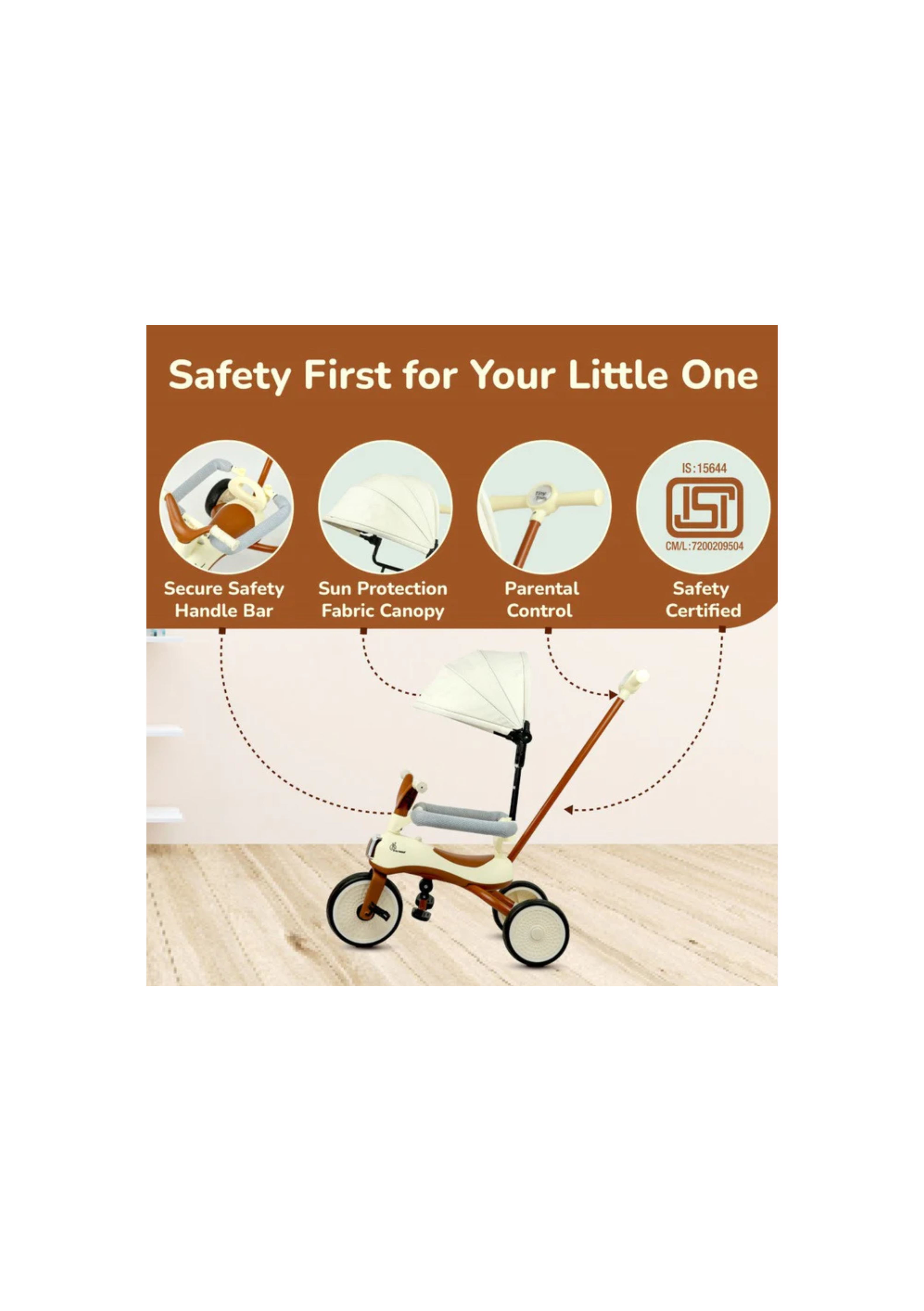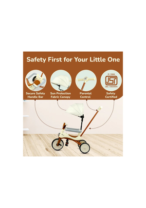 Tiny Toes Karizma - Luxury 3-in-1 Smart Tricycle for Kids 2 to 5 Years with Music & Canopy Cream Brown