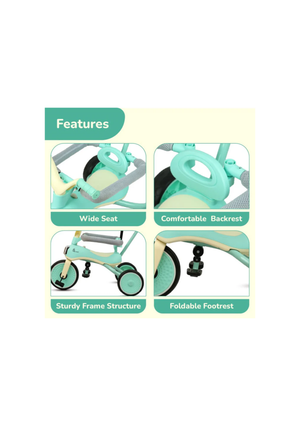 Tiny Toes Karizma - Luxury 3-in-1 Smart Tricycle with Music & Canopy Green Cream