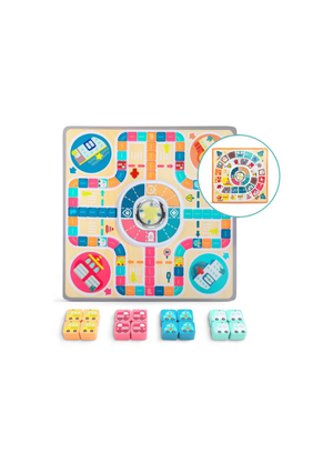 Our 2in1 board game for kids has goose chess and flying chess. Combines the game of the dice with the traffic turntable and the detachable dice turntable can be used on both sides. Use the method of flapping to roll the dice, not only the dice are not easy to lose, but also increase the excitement and fun of interaction. A good family game for adults and kids can promote parent-child relationship and increase friendship. Recommended for 2-4 Players.