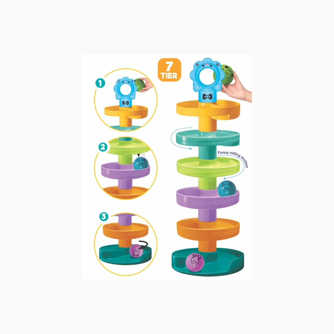 - 3 sound making balls when spiral down the game, provide immense entertainment for little ones - in terms of sound & positions