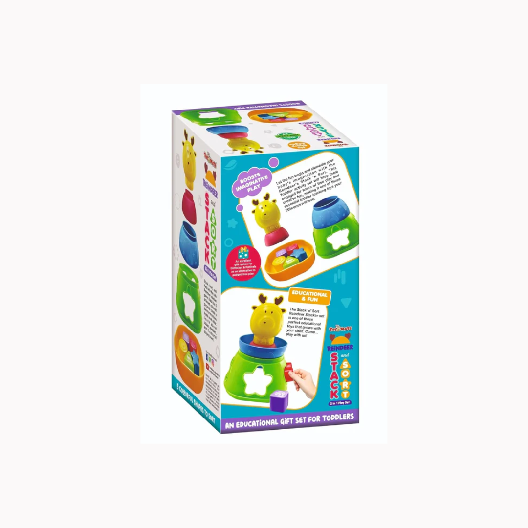 - Toymate's Reindeer Stack & Sort is a fun toy for 12-18-month-olds. Stack five pieces to make a cute reindeer tower, then sort five shapes for learning fun. Boost motor and problem-solving skills, stimulate agility, and develop early learning concepts - making playtime educational and entertaining!